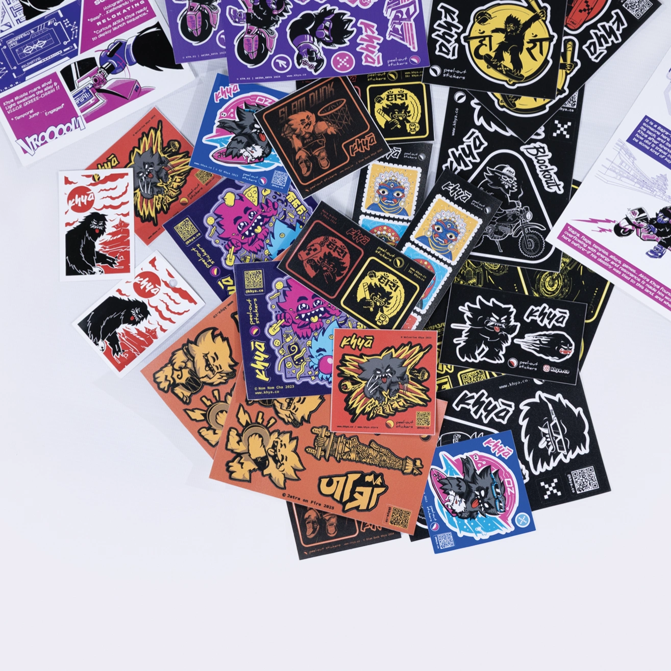 This easy to peal multipiece Jatra Khya sticker set offers a variety of detailed artwork of Jatra and Bunga Dya, ideal for personalizing everyday items! Stick it on Notebook, Phone, Laptop, Water bottle, Instrument Box, storage drive, iPad, Helmet and what not!